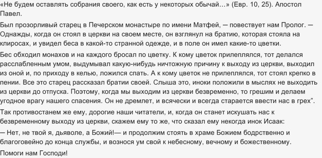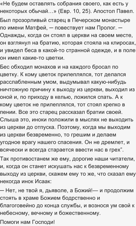 Уходя из церкви раньше, верующий часть её захватывает с собой.