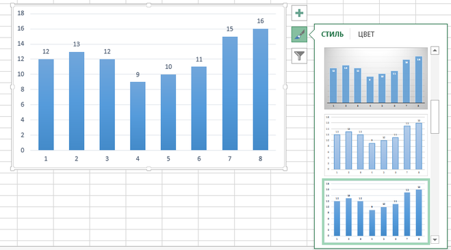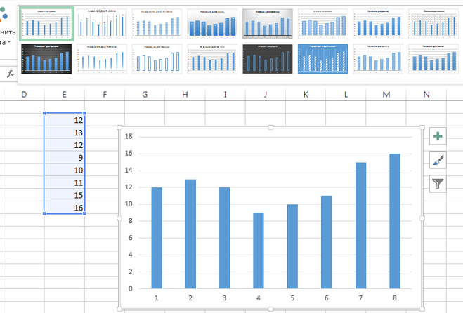 Есть плоские и объемные, с квадратным/круглым сечением и прочие. Кликнули куда нужно и все отобразится на экране, потом, если изменения какие нужны, сделайте двойной клик мышкой на гистограмме и она станет активной. Можно разные подписи сделать, например, осей или названия столбцов, ввести сумму или поменять стиль и цветовое отображение столбцов, а также много чего другого, позволяющего сделать гистограмму более аркой или там информативной.