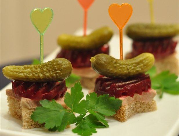 Также с соленым огурчиком можно сделать бутерброды или канапе и подать к столу в таком виде.