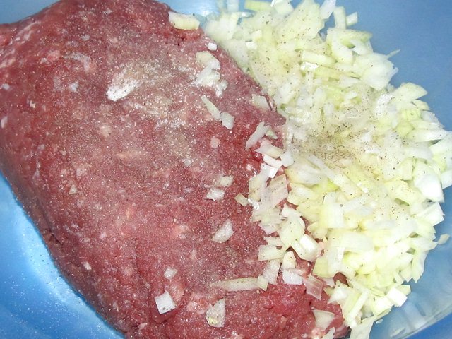 Для придания фаршу сочности стараемся выдержать пропорцию, чтоб сала в нем было около 20 процентов. Остальное - мясо и лук, а также зажарка из лука с морковью.
