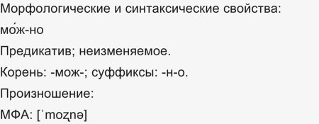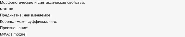 Но все же, невзирая на произношение, запомним, что слово "можно" пишется с буквой "о" в конце. Сравним с похожим словом "возможно" с конечным суффиксом -о, которое имеет следующий морфемный состав: