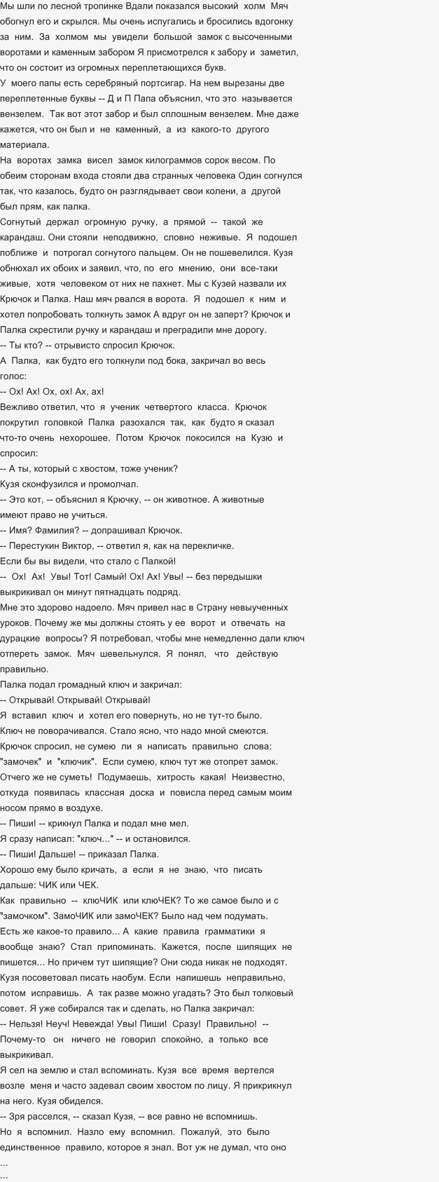 В качестве яркого и запоминающегося примера, там использованы слова "ключик" и "замочек", которые главному герою - школьнику Виктору Перестукину необходимо правильно написать, чтобы в итоге попасть обратно домой. Вот этот отрывок: