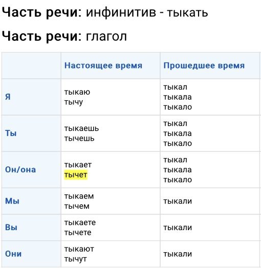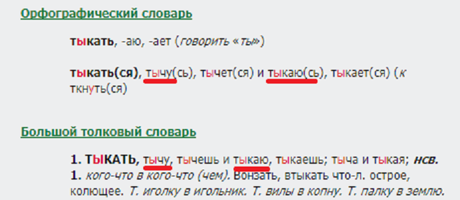 То же самое и с повелительным наклонением: у первого омонима формы (не) тычь и (не) тыкай, у второго – (не) тыкай.