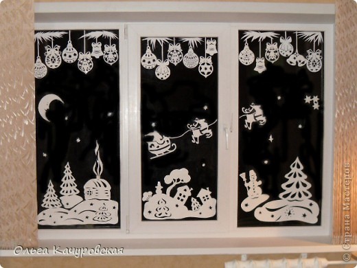 Затем приклеиваем эти трафареты с помощью мыльного раствора к окну - в той комбинации, которая вам придётся по душе.