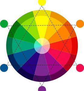 А можно попробовать сочетание салатового и цикламенового, здесь уже контраст на переднем плане, и смотрится более креативно. Подходит скорее для творческих личностей. Или союз салатового и апельсинового ( по шкале угол в 45 градусов), салатового и цвета баклажан, салатового или лилового, салатового и брусничного цветов ( и даже малинового) ( по шкале угол 180 градусов).