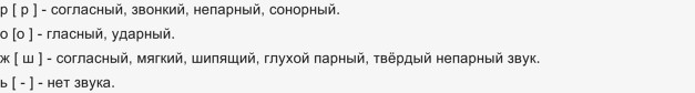 1) Букве Р соответствует звук [Р] - согласный, звонкий, сонорный, твердый.