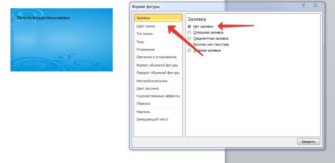 Открываем "Формат заливки" и выбираем "Нет заливки".