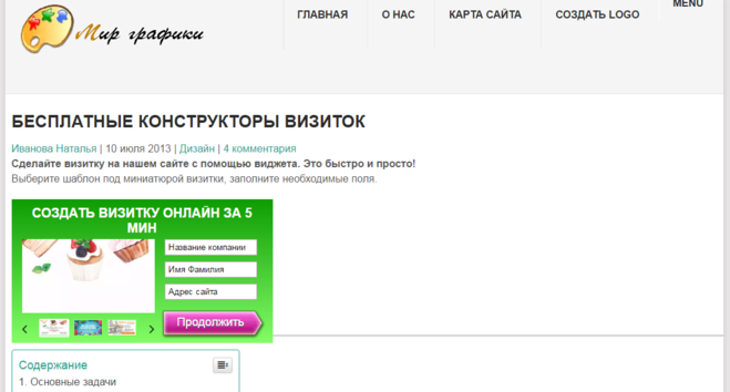 Вот еще один интересный ресурс с массой интересных ссылок по этой теме, советов, и программ по созданию визитных карточек, как стационарно так и онлайн.