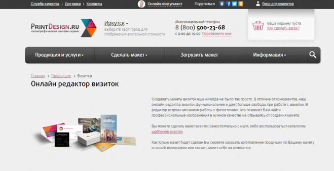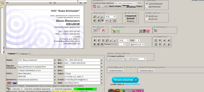 Онлайн редактор визиток. Можете создать свою визитку, а можете воспользоваться имеющимися шаблонами.
