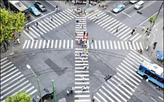 Да ... уж. Вот я смотрю - где-то диагональные переходы делают для быстроты и удобства, а в нашем захолустье (пардон, в мегаполисе) поступают совершенно наоборот. В центре города на обычных перекрёстках, где движение пешеходов шло по четырём дорожкам и регулировалось светофорами, теперь по два "выхода" закрыты турникетами, а дорожек осталось две. То есть, зачастую, чтобы перейти на противоположную сторону улицы - три перехода совершить надо, три раза переключения светофора ждать ... иногда - минут пять выходит(