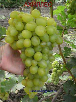 - "Ахиллес" - вкусный, сладкий, с мускатным ароматом, гроздья крупные, до шестисот граммов весом. Выдерживает морозы до 24-х градусов.