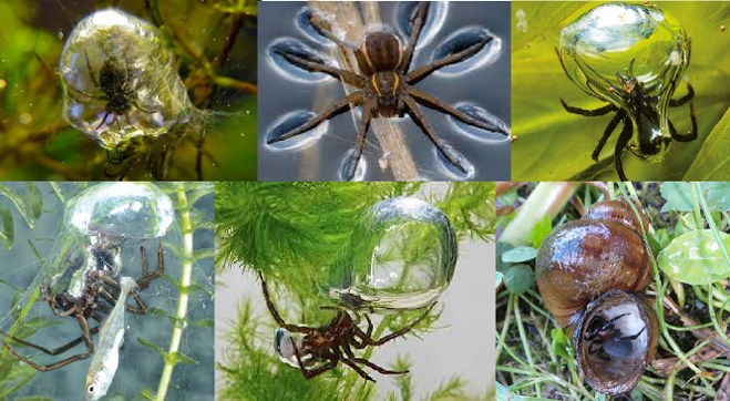 А есть пауки, которые зимуют .. под водой. Пауки-серебрянки или водяные пауки на зиму делают подводный кокон наполняют его воздухом и там проводят зиму. Она выбирают подходящее скопление травинок или водорослей и оплетают их сверху, делая крышу колокола, потом с поверхности забирают воздух и наполняют колокол воздухом постепенно доплетая объем. Интересно, что они даже умудряются там питаться, выбирая пищу себе по размеру. А их видовые родственники наполняют воздухом пустую раковину моллюска и потом запечатывают входное отверстие.