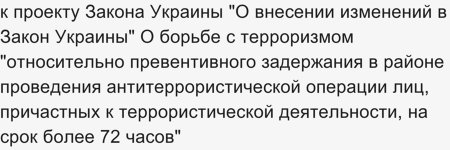 Вся территория, на которой киевские управленцы проводят, так званное - АТО, объявлена - по сути - вне действия международных правовых норм и уложений. Теперь абсолютно каждого человека, которого, лишь подозревая в чем-либо, могут лишить свободы на срок до 30 суток. Что характерно - без решения суда. Суд теперь не нужен. Достаточно приказа местного начальника МВД или СБУ.