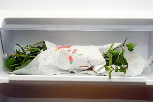 Далее, вам нужно завернуть побеги мяты, а также отдельные листья от стеблей в бумажные салфетки, а после уложите в пакеты или контейнеры, которые можно закрыть.