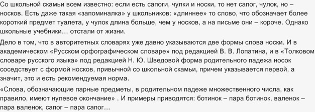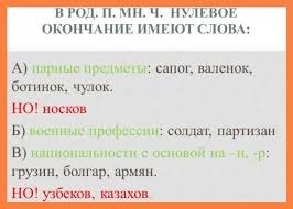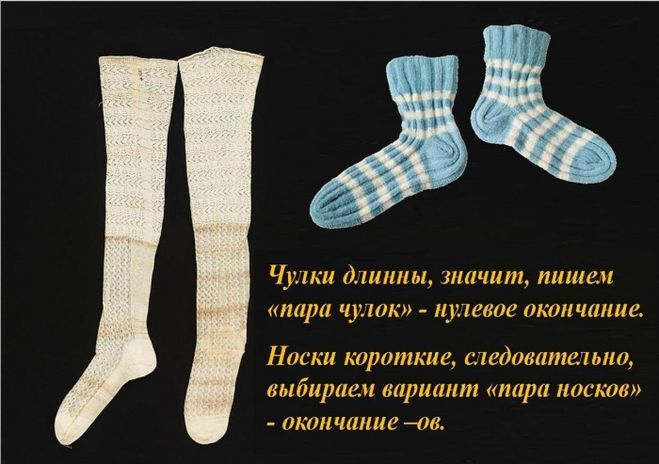 Очень часто перед многими появляется вопрос, как писать слова "носок" или "носков, "сапог" или "сапогов" и чтобы уяснить, вспоминаем правило русского языка о написании названий парных предметов одежды, обуви в родительном падеже, которые всегда имеют нулевое окончание, кроме - носков и гольфов.