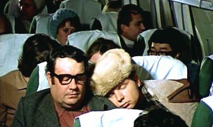 Кадр из к/ф "Ирония судьбы, или С лёгким паром!". Пассажир с самолета - Э. Рязанов, Женя Лукашин - А. Мягков.