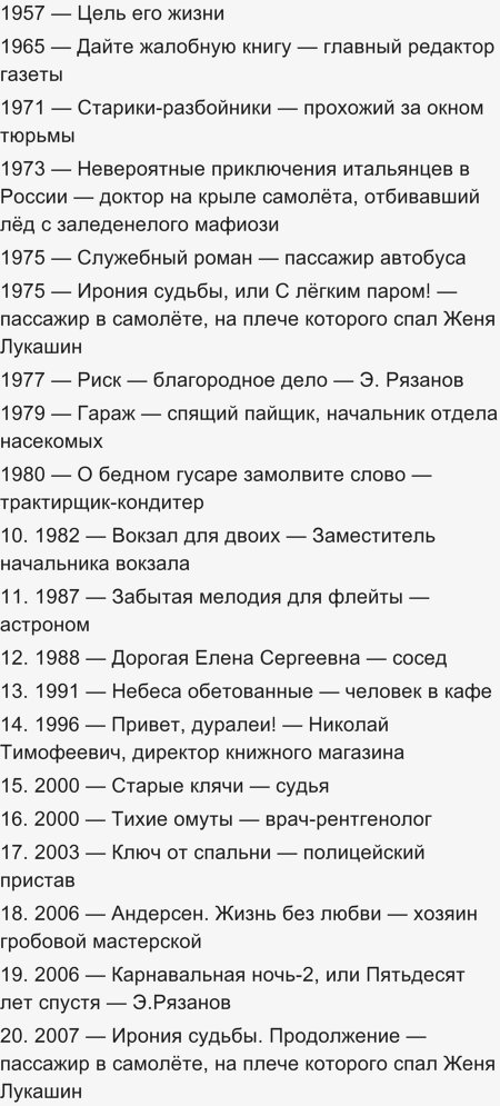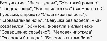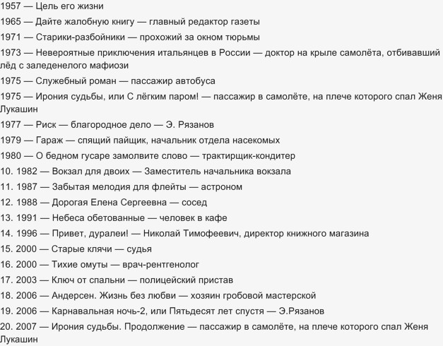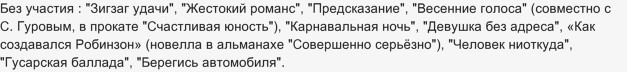 Без его участия как актера у меня получились следующие фильмы Эльдара Рязанова :