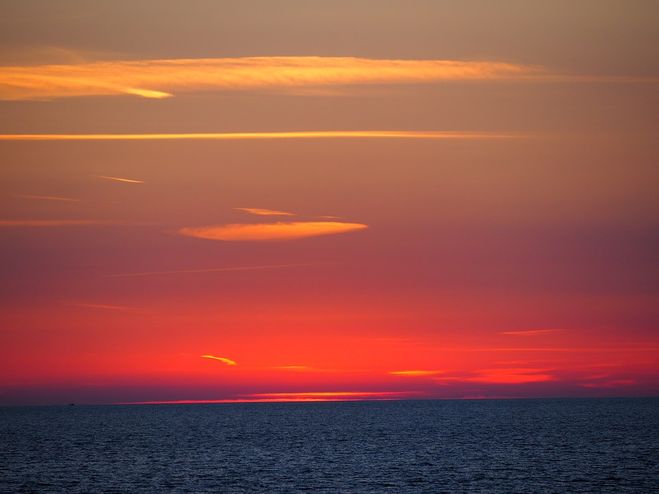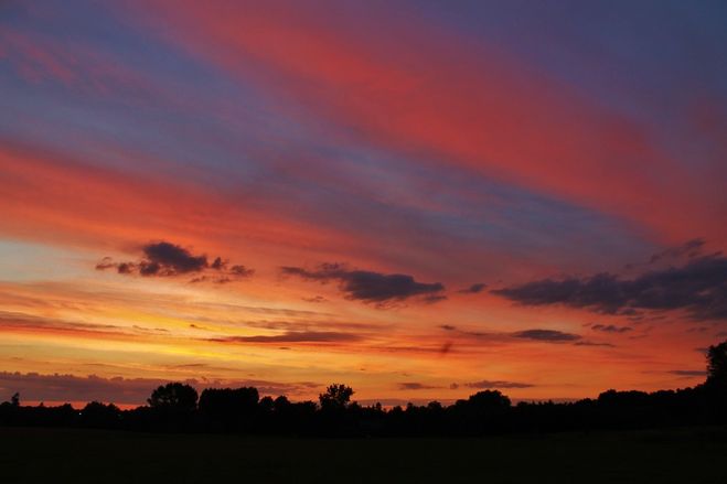 Насколько я понимаю, речь идёт о ситуации, когда на небе можно чётко различить три полосы: белую, синюю и красную. Такое случается практически повсеместно. Например, в Кирове.