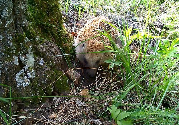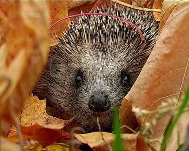 У меня есть собака, и осенью довольно часто в парке она натыкается на лежбища ежика в парке.