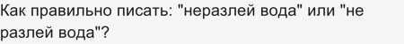 Как правильно писать: "неразлей вода" или "не разлей вода"?