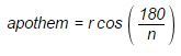В математике апофема - перпендикулярная линия, проведенная от центра до середины стороны правильного многоугольника (см. рисунок ниже).