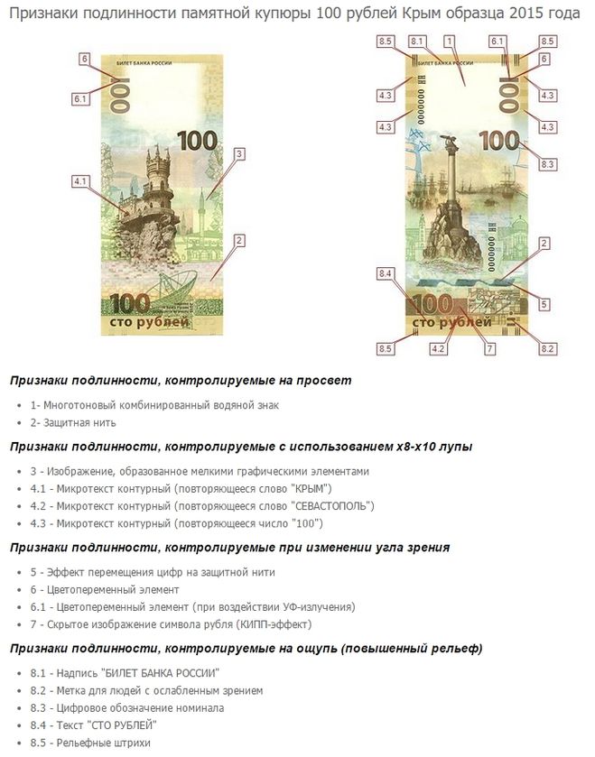 Какая защита у новой банкноты: 100 рублей Крым 2015 можно прочесть на этой страничке. http://www.bolshoyvopros.ru/questions/1884579-kakaja-zaschita-u-novoj-banknoty-100-rublej-krym-2015-chem-zaschischena-kupjura.html#fr=1fc4ff9984— 9 лет назад