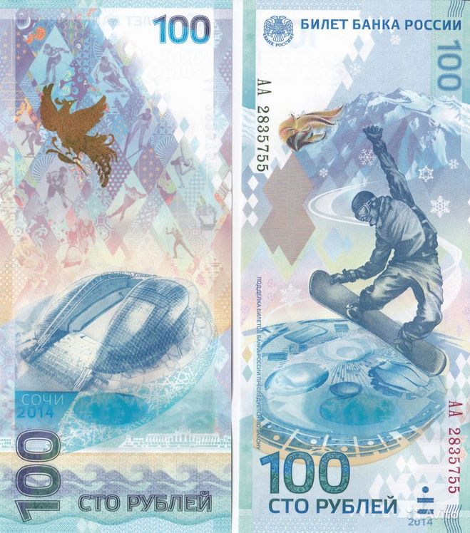 В 2014 году пару сторублёвых юбилейных банкнот Сочи 2014 в банке при получении наличных обрёл, соседу на сдачу дали. А сейчас на сайтах коллекционеров уже торгуются до 890 рублей!