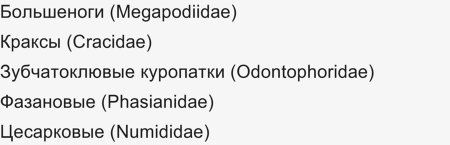 В этом отряде пять семейств и все представители этих семейств (самцы) могут быть названы (и называются) петухи: