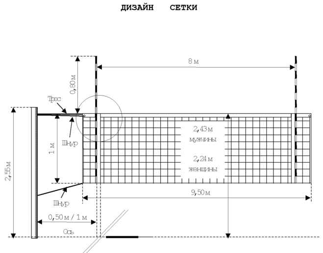 Пляжный волейбол. Каков размер и разметка площадки? Какова высота сетки?