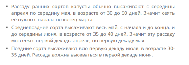 Когда высаживать цветную капусту в открытый грунт в 2018?