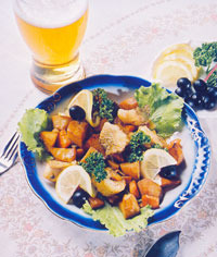 Нам надо :судак 150 гр.,картофель 250 гр.,масло растительное 80 гр.,лук (1 шт ),морковь 1 (шт),салат латук (совсем немного),коньяк 50 гр.?,немного зелени,специи по вкусу.