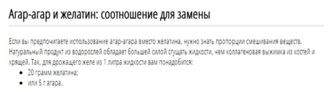 Агар-агар, как и желатин является природным загустителем, поэтому они считаются взаимозаменяемыми.