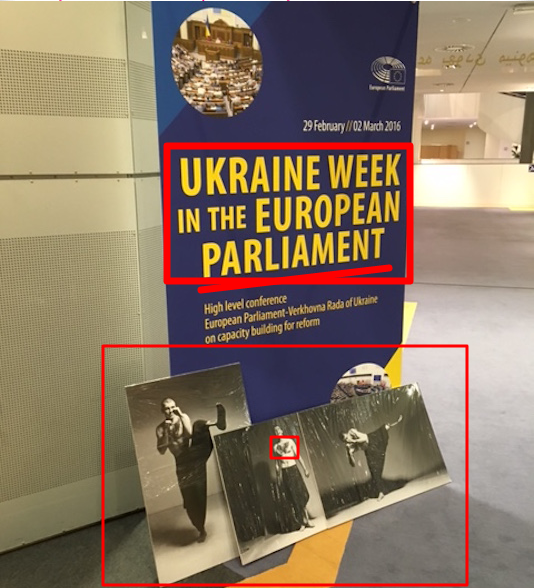 Как написал на своей странице в Facebook украинский политолог Владимир Корнилов, организаторы выставки в европейской столице безуспешно пытались скрыть скандальные фото.