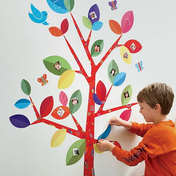 Выкрасить целую стену или часть стены магнитно-грифельной краской. Эти краски бывают самых разных цветов, так что вполне момно будет подобрать цвет в тон интерьеру. Будьте уверены дети такое новсшество оценят весьма высоко, так как на этой стене можно будет писать и рисовать мелом всё, что угодно. Так же на эту стену можно крепить разные магнитики либо прикреплять магнитами картинки, рисунки и т.д.