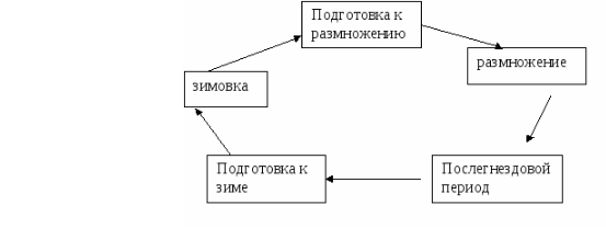 Схематично можно так отобразить сезонные явления, свойственные птицам: