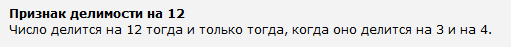 Правило деления на 12 без остатка будет выглядеть так: число, которое одновременно делится на 3 и на 4 кратно 12.