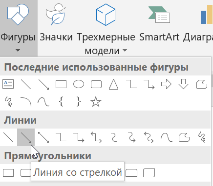 Таким образом, выберите нужную стрелку в фигурах и разместите в вашем документе.
