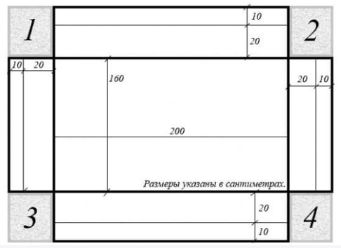 Можно сшить простыню на резинке своими руками. Тогда выкройку следует сделать так: