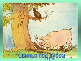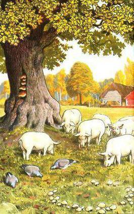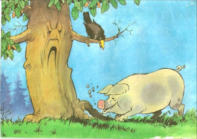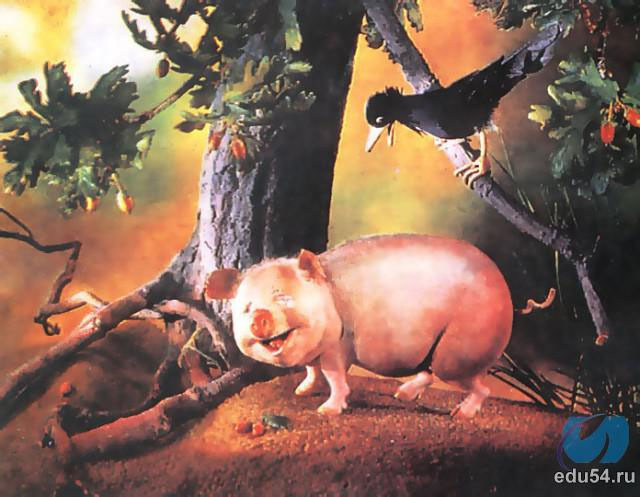Потом мы должны совместить свинью и дуб и получить например такой рисунок к басне "Свинья под дубом":