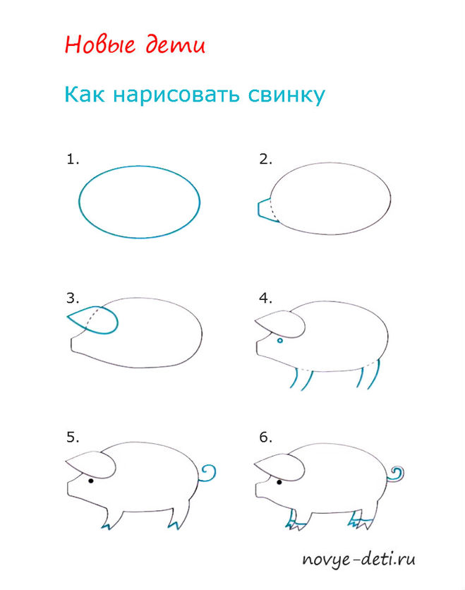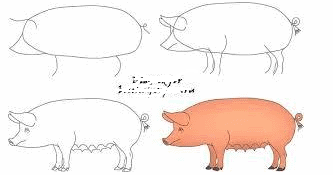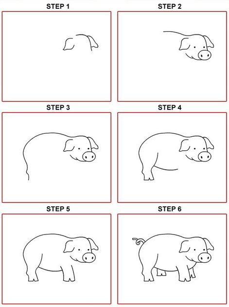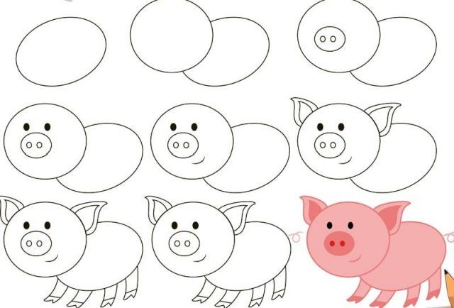 Есть еще один вариант того, как пошагово нарисовать свинью, возможно, он вам понравится больше.