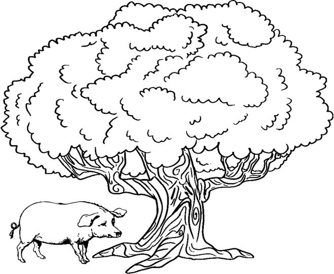 Чтобы сделать такой рисунок нужно нарисовать дерево - дуб, и свинью конечно же. Начнем с могучего дуба: