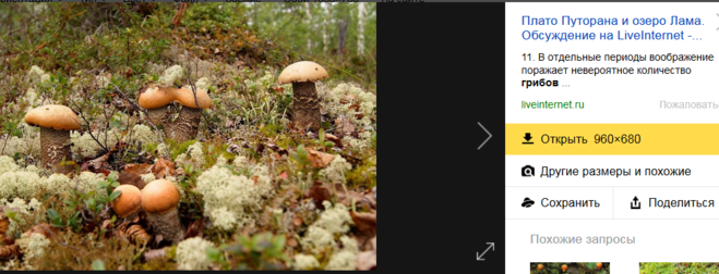 По всей тундре растут сыроежки. Иногда можно встретить: зеленый моховик, лисички, сморчки.