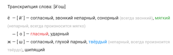 Но, если сделать звукобуквенный разбор слова, тогда можно сразу ответить на поставленный вопрос. Ведь, не смотря на то, что слово состоит из двух букв, в слове три звука: [й], [о] и [ш].