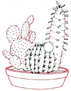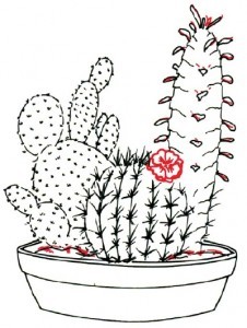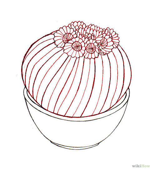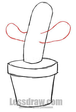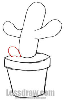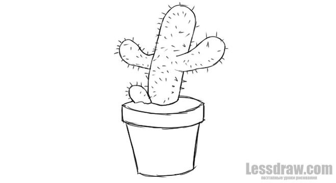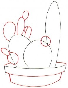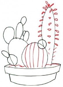 Перерисовываем контуры кактусов. На горшке - дополнительные линии: