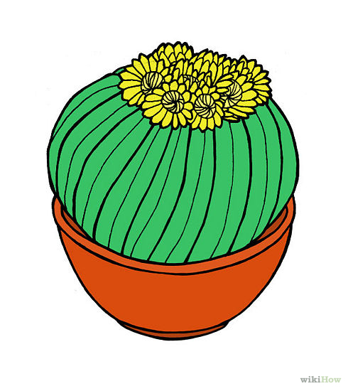 Чтобы изобразить кактус поэтапно карандашом, следует сперва набросать контуры всех составляющих частей кактуса, а потом дорисовать колючки и разукрасить целиком всю картинку.