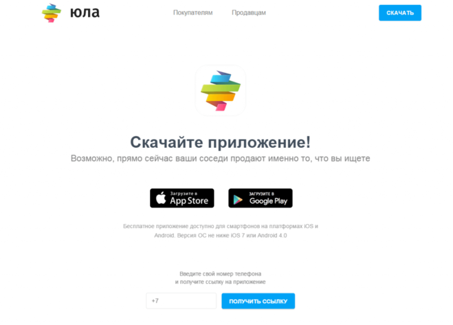 Приложение для подачи бесплатный объявлений Юла предусмотрено только для мобильных устройств - планшетов, смартфонов с операционной системой IOS и Андроид.