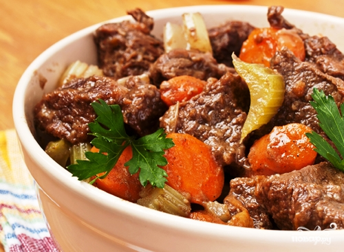 Чтобы сделать такое блюдо будут нужны пятьсот грам мяса ягнёнка, двести грам лука репки, пятьсот грам картошки, чеыреста грамм моркови, пятьсот милилитров тёмного пива, двести грамм сельдерея, сто грамм муки, восемь грамм чёрного перчика, три лавровых листика, сорок милилитров подсолнечного масла, восемь грамм тимьяна, десять грамм петрушки, четыре дольки чеснока, двадцать грамм соли. Сначала подготовим овощи. Почистим и промоем пятьсот грамм картошки, четыреста грамм моркови, двести грамм репчатого лука, четыре дольки чеснока. Пятьсот грамм мяса ягнёнка промоем, порежем на куски и обваляем в муке. В сковородку нальём подсолнечное масло и подогреем на огне. Забросим в сковородку куски мяса и обжарим с обеих сторон. Положим обжаренное мясо в кастрюлю и добавим нарезанные морковь, лук и сельдерей. Вольём в кастрюлю пятьсот миллилитров пива, доведём до кипения и тушим тридцать минут. Через тридцать минут добавим порезанный кусками картофель и измельчённые чеснок и петрушку. Пару минут потушим и снимем готовое рагу с огня. Приятного аппетита!