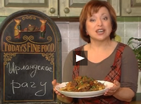 Елена Чекалова предлагает так приготовить это блюдо. Будут нужны полтора килограмма говяжьего мяса, четыреста миллилитров пивка, три стаканчика бульона, шесть долек чесночка, триста грамм законсервированных помидор, сто грамм корешка сельдерея, одна большая ложечка сахарного песка, две большие ложечки тимьяна, два листика лаврушки, две большие ложечки коровьего масла, пятьдесят грамм подсолнечного масла, полтора килограмма картофеля, две луковки, две морковки, две большие ложечки петрушки, соль, перец. Сразу обжарим на сковородке с подсолнечным маслом мясо. В другой сковородке обжарим очищенные и порезанные морковь, корень сельдерея, лук до состояния мягкости. Добавим в сковородку тимьян, очищенный от шелухи чеснок, вольём соевый соус и обжаренное мясо. Пиво разогреем и вольём в сковородку с мясом. Вольём бульон. Посолим, поперчим, положим лаврушку, горошинки чёрного перца, насыпем сахарный песок. Тушим рагу на маленьком огне пятьдесят минут до готовности. Готовое рагу снимем с огня, положим в тарелки и подадим на стол. Приятного аппетита!