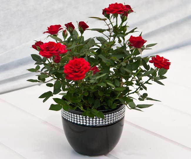 Скорее всего Вы подразумеваете о розах, как комнатных розах, которые для продажи выставляют в не больших горшках и в цветущем виде, в цветочных магазинах, что многие цветоводы и любители покупают из - за красоты.