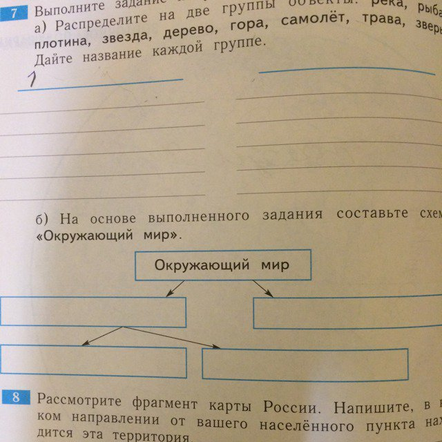 Распределите на две группы объекты: река, рыба, плотина, звезда, дерево см?